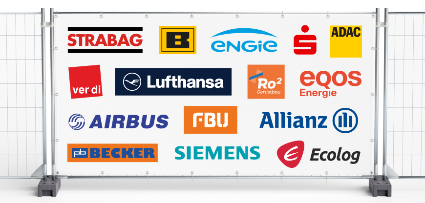 Beispielbilder und Einsatzgebiete von bedruckten Bauzaunplanen